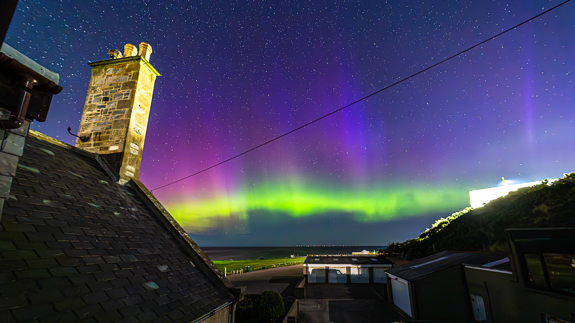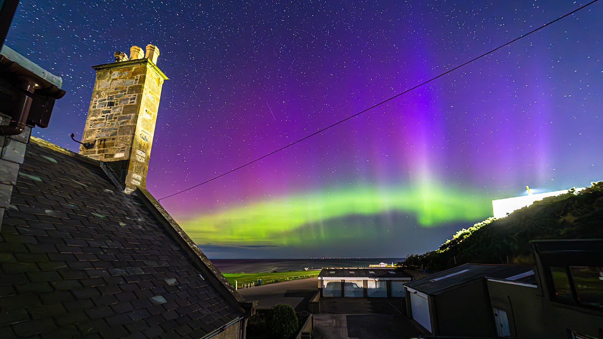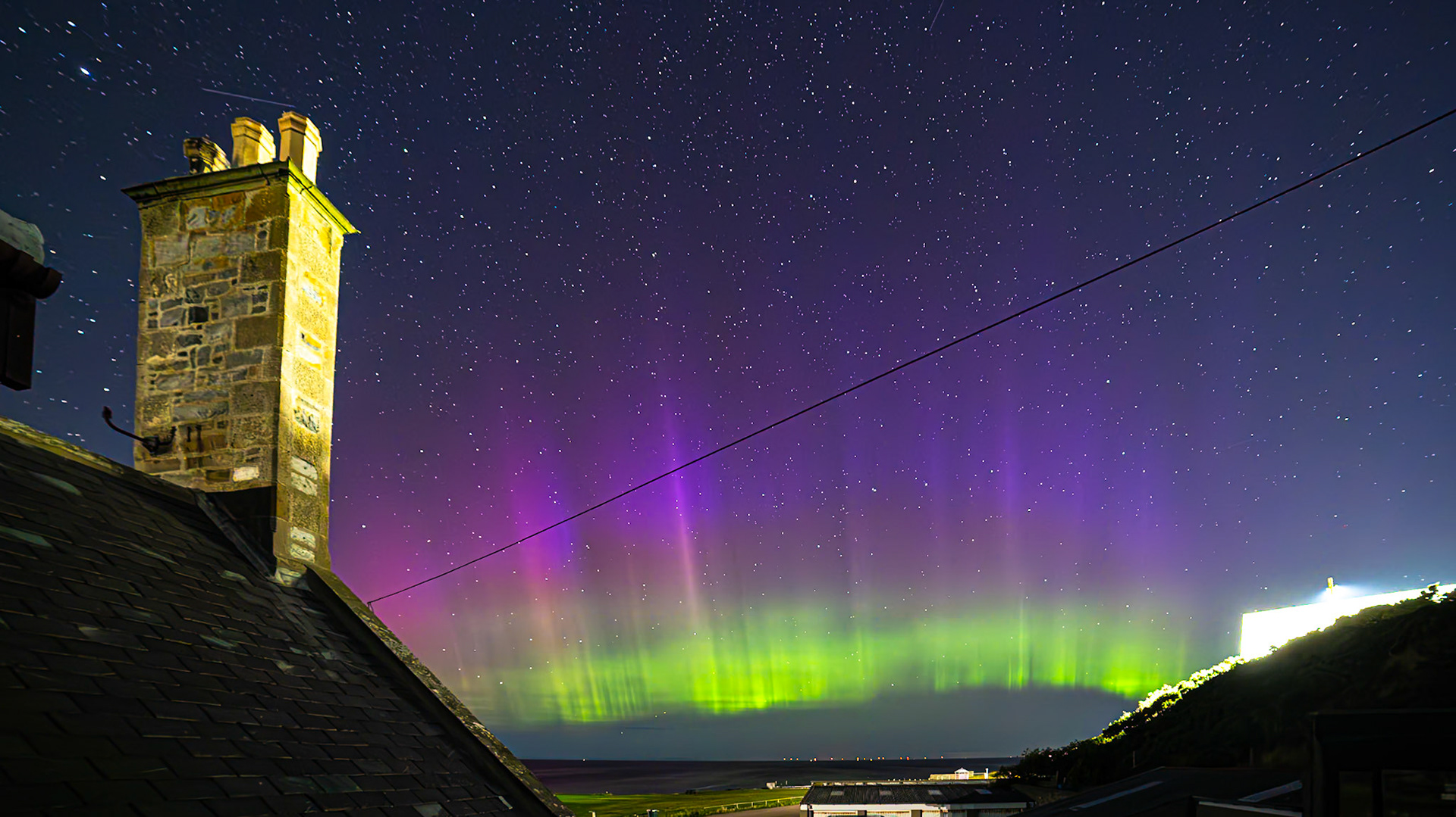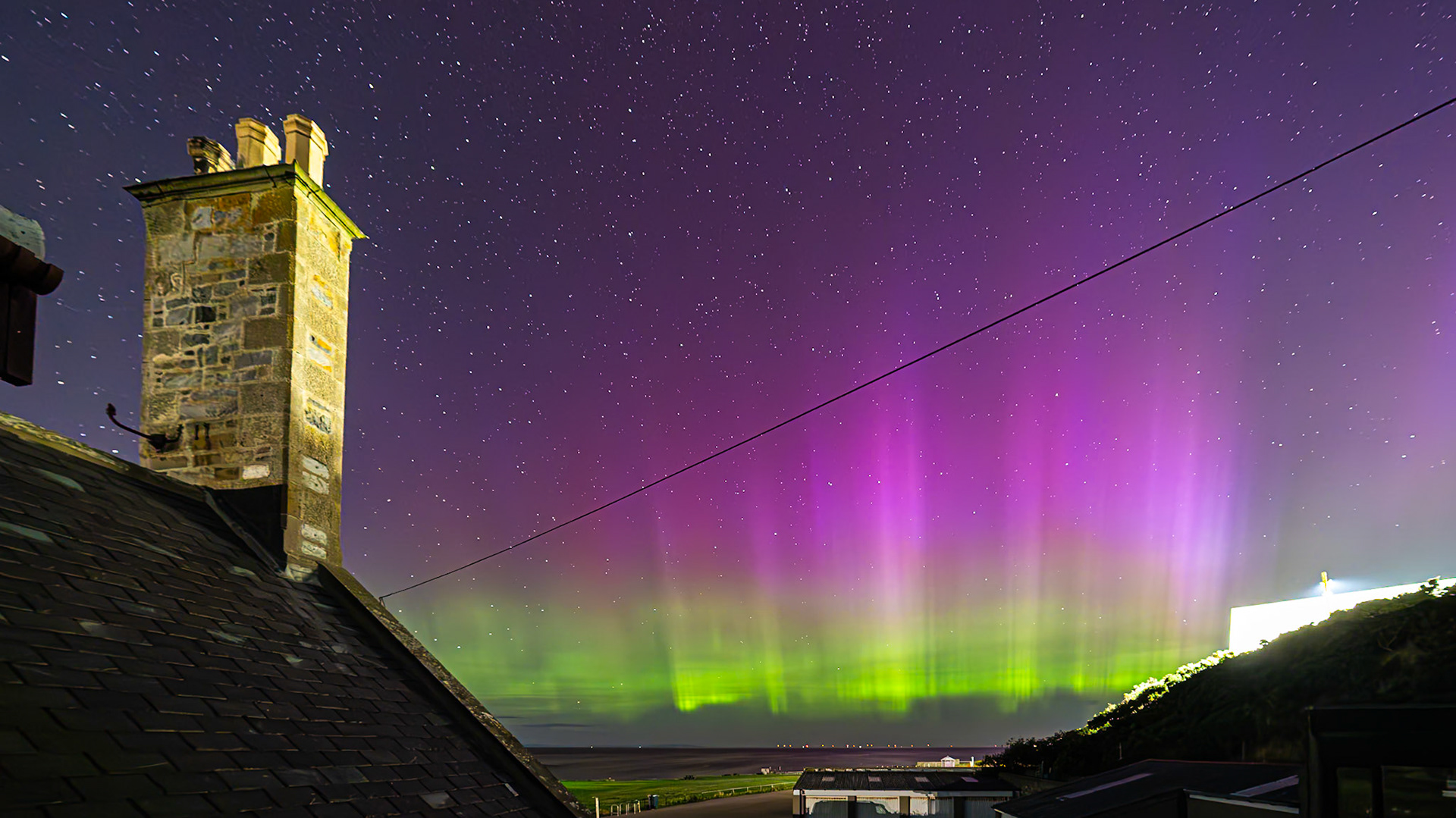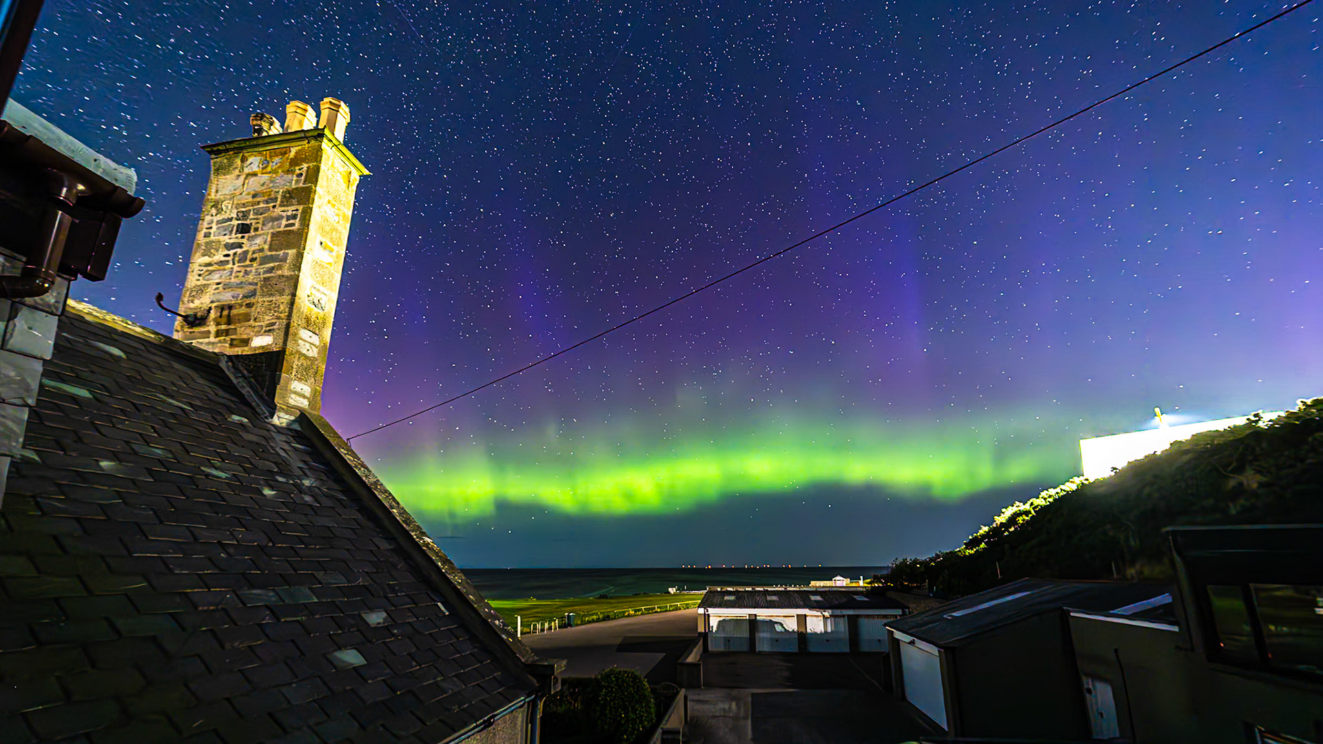 Aurora shot on the 28th of August '24. This was very strong with great bursts of activity . Huge rays along the arc of the aurora could be seen.