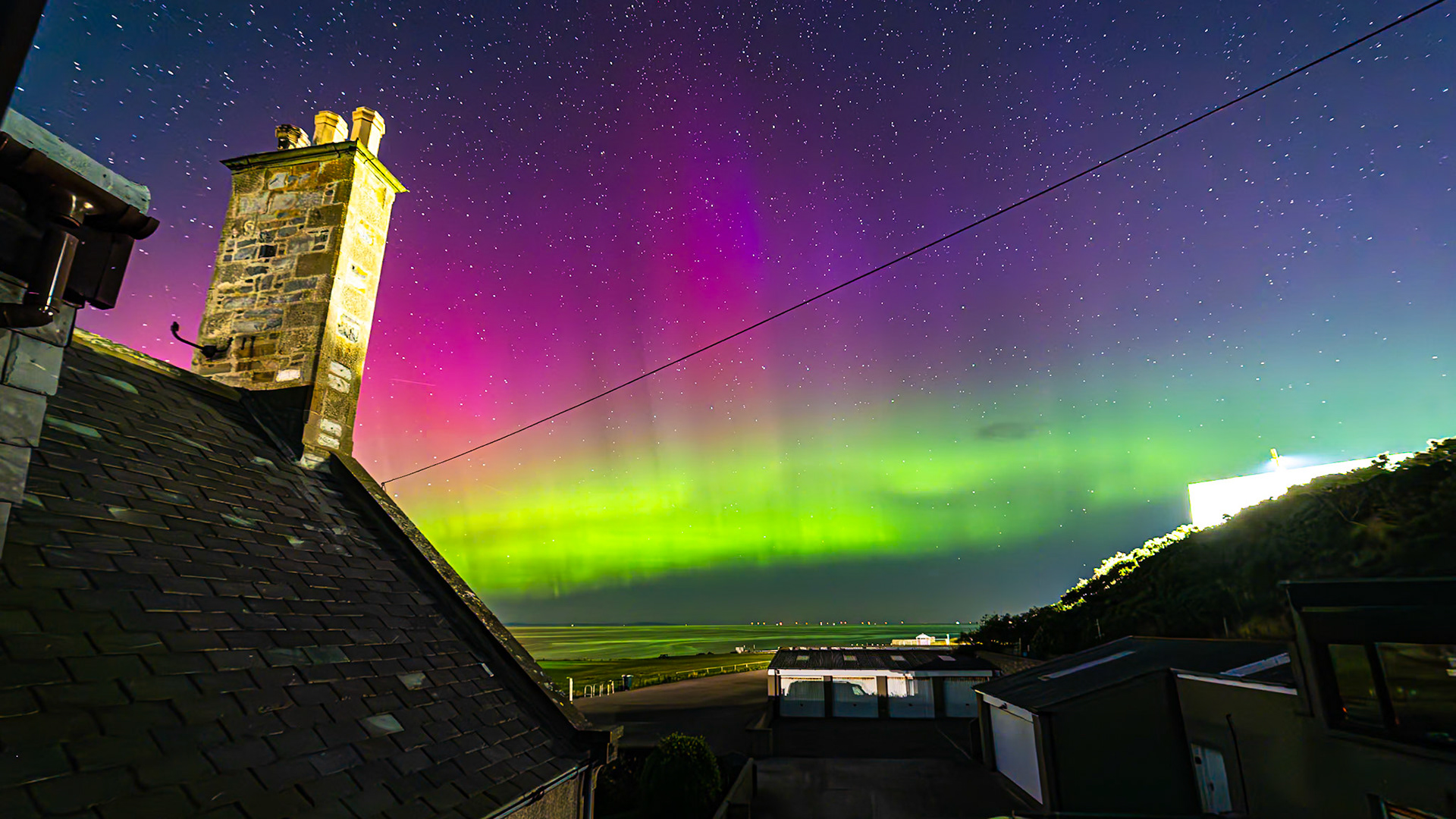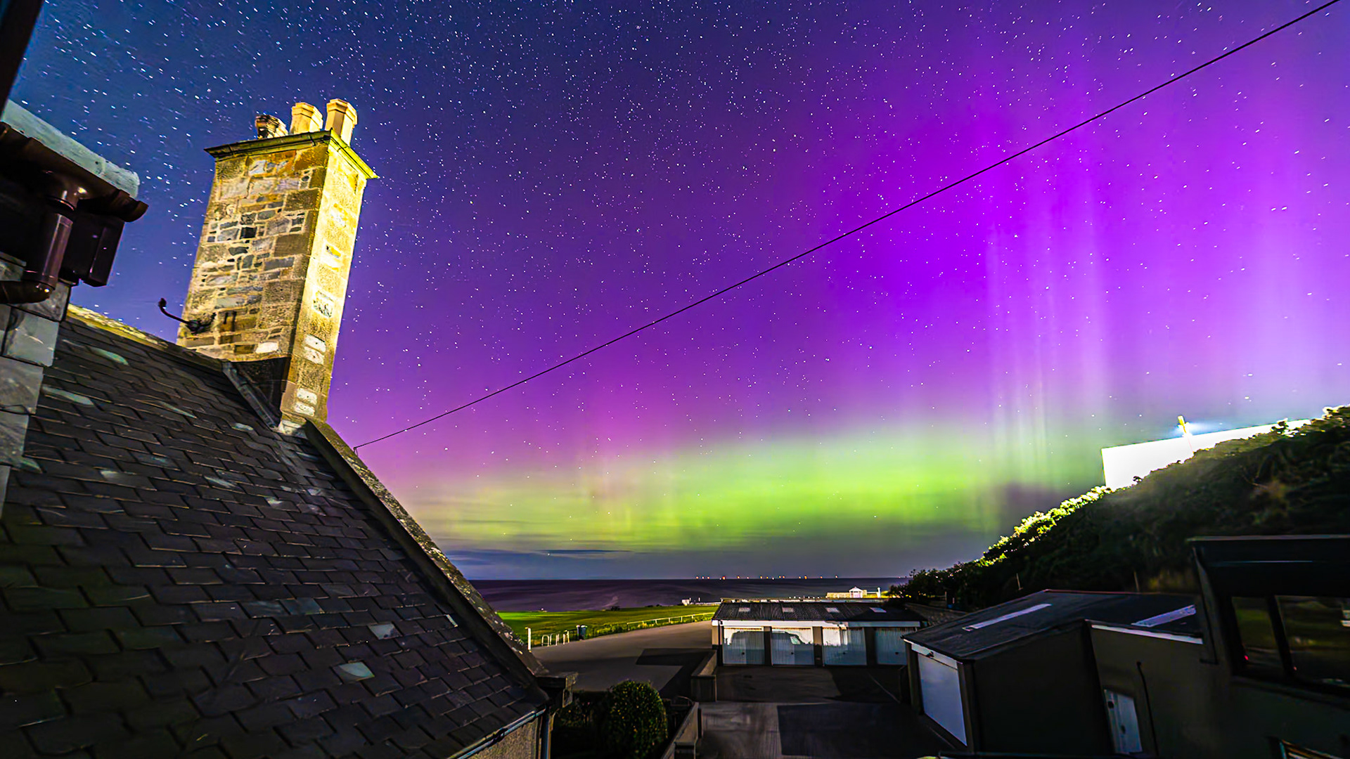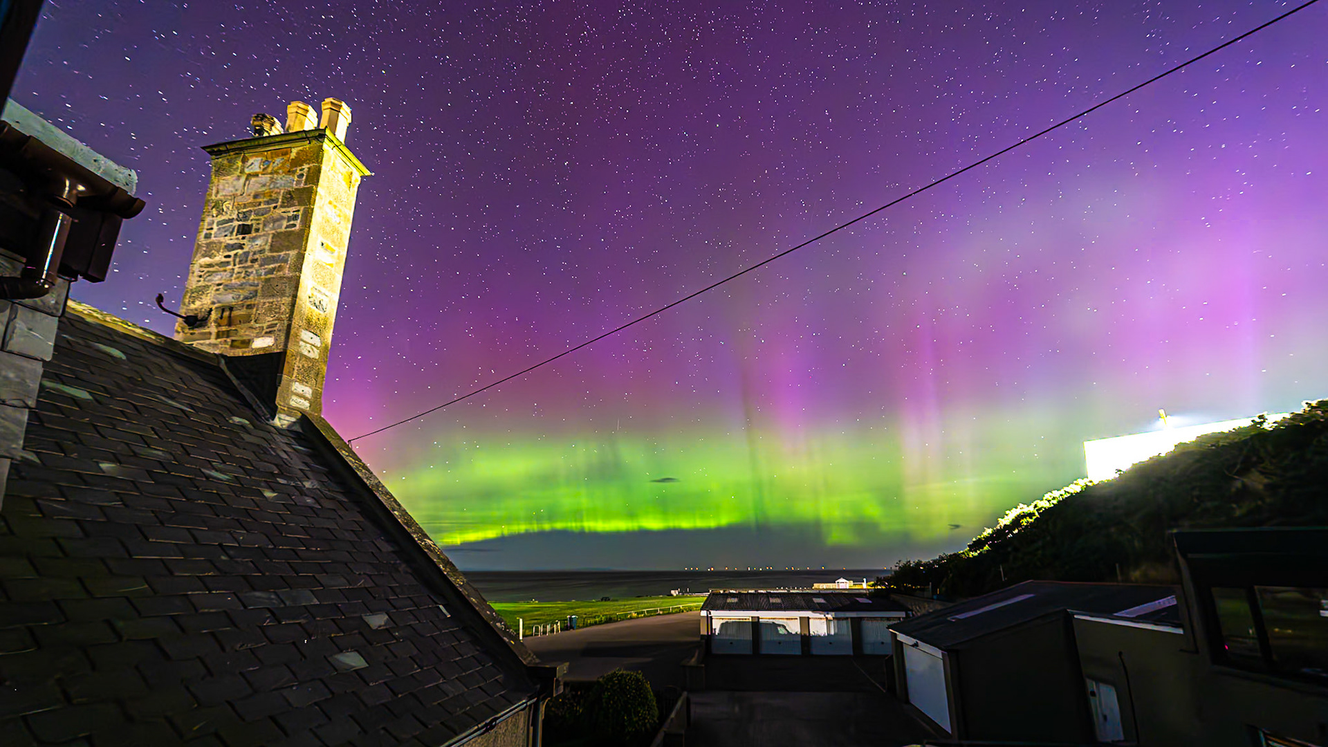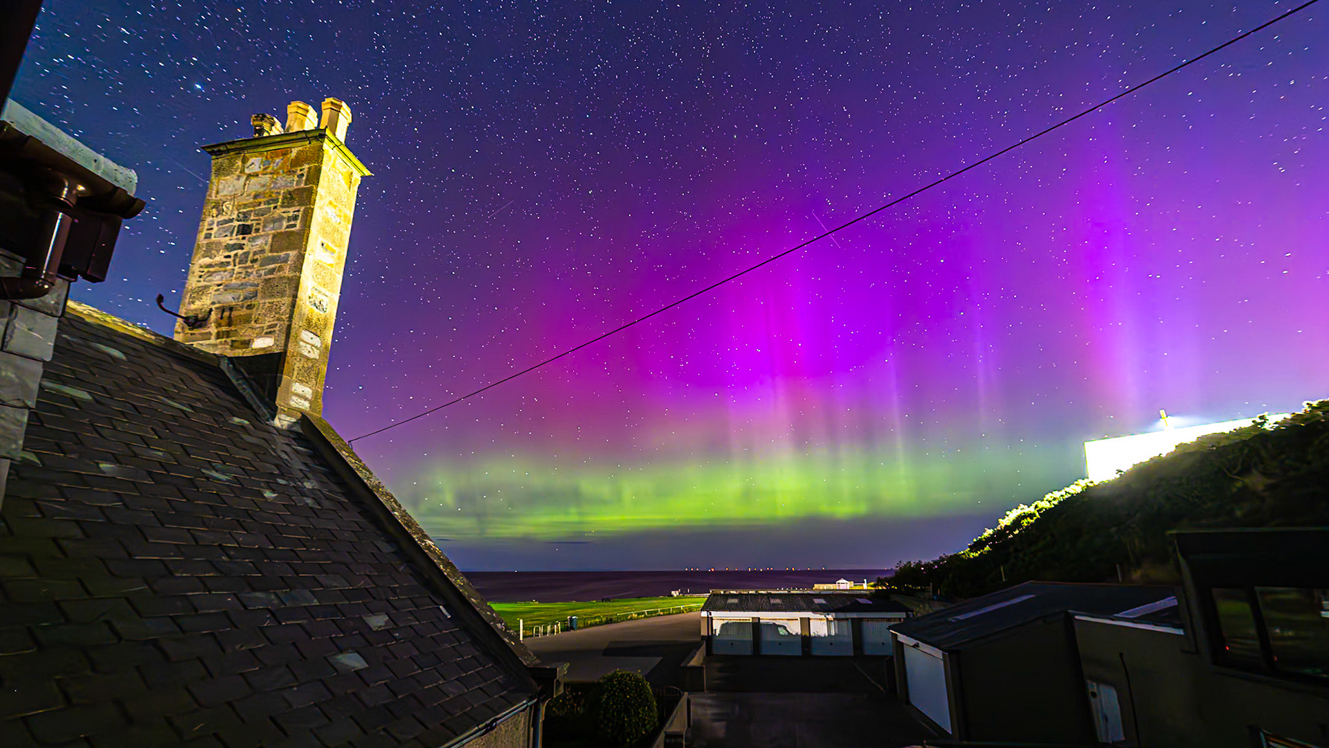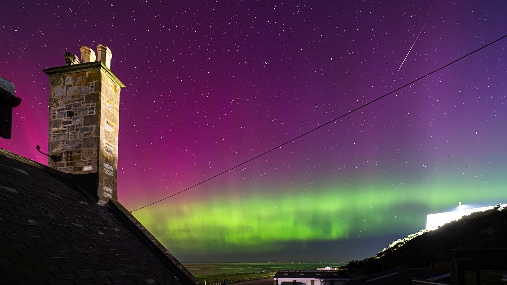 Aurora shot on the 28th of August '24. This was very strong with great bursts of activity . Huge rays along the arc of the aurora could be seen.
